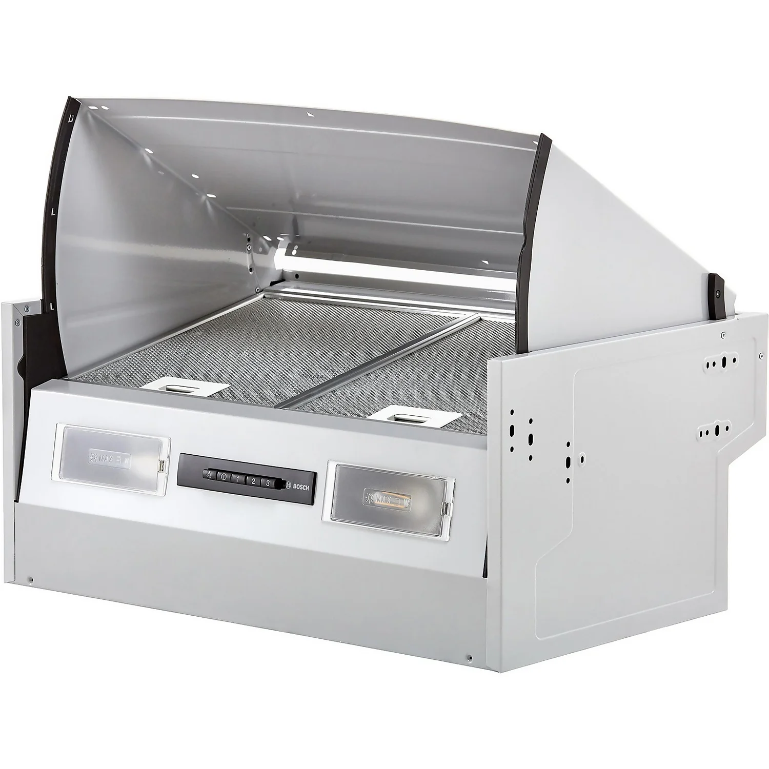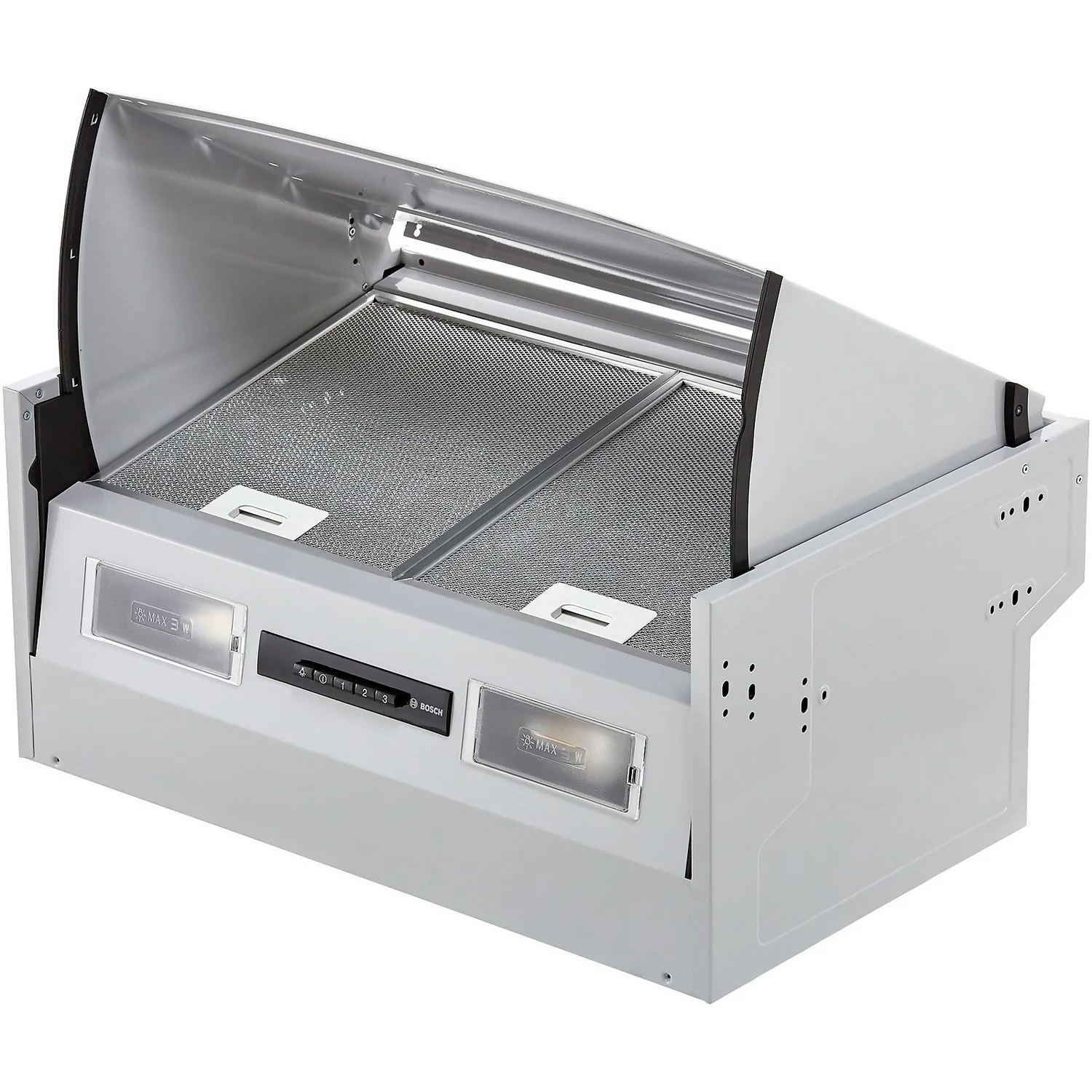 - This Bosch cooker hood has a 360m³/hr extraction rate, which is great for small kitchens.