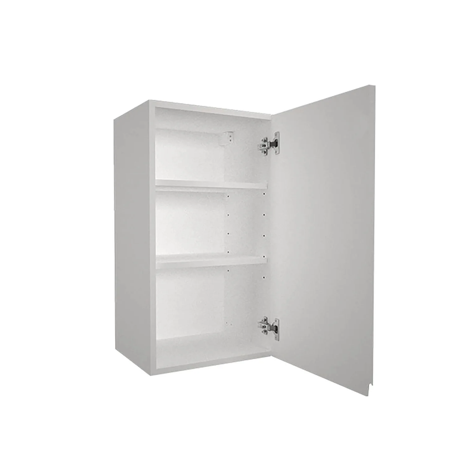 A 400mm wide kitchen wall cabinet complete with contemporary gloss white handleless door (Flat pack cabinet).