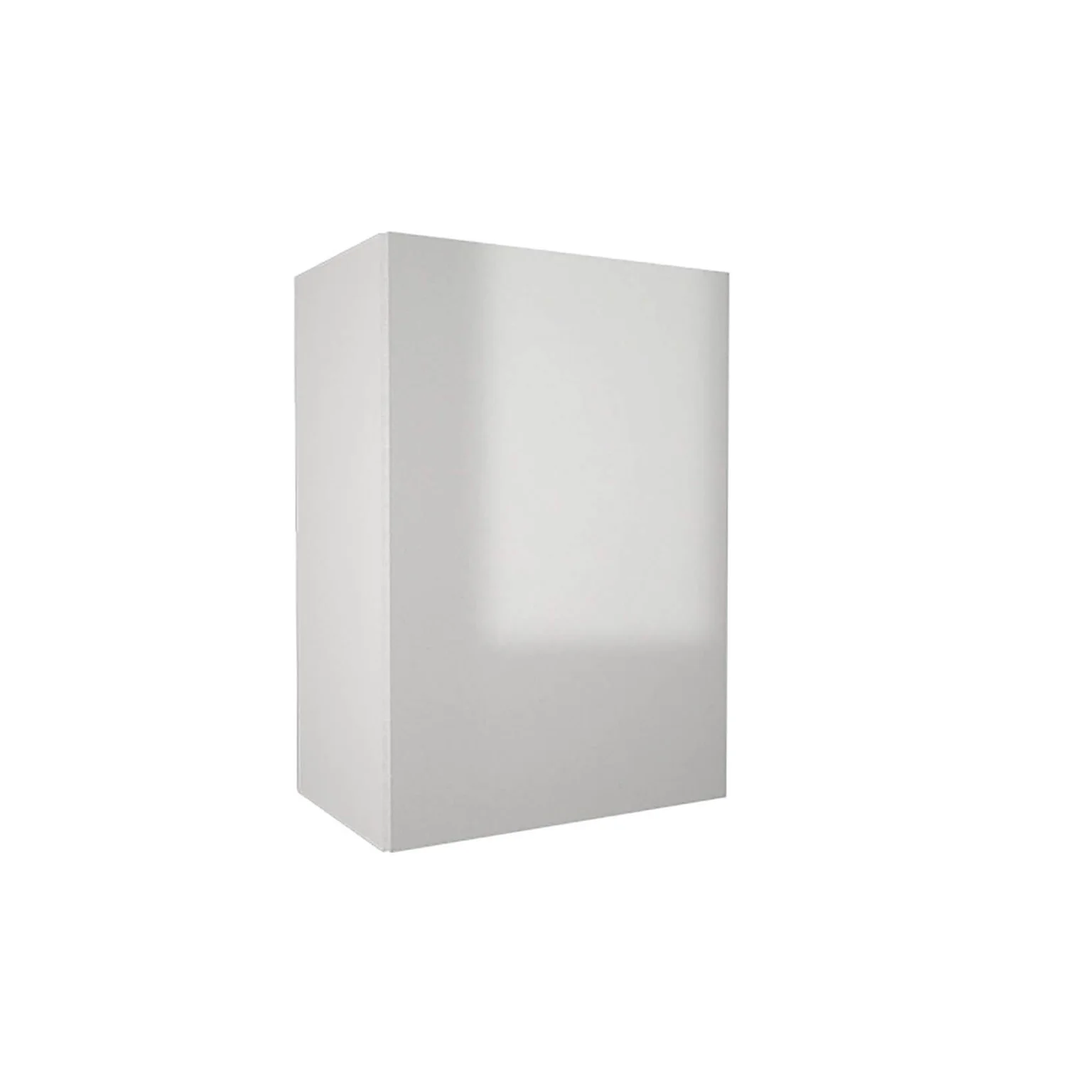 A 500mm wide kitchen wall cabinet complete with contemporary high gloss white slab door (Flat pack cabinet).