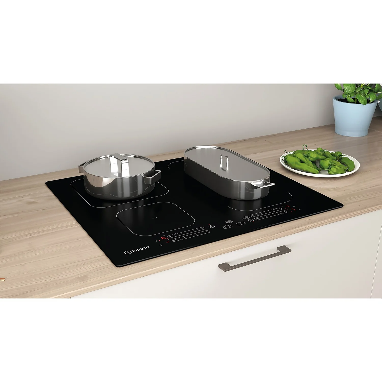 - 4 zone induction hob gives you plenty of space to cook your favourite meals, using clever technology to heat your pan but not the surface